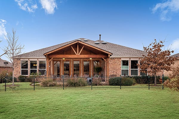 This home is located in a highly desirable active adult community in Frisco Texas. The home sits facing the golf course and walking trail. This was the importance and reason behind the upgraded covered patio and expanded living area remodel for this Homeowner.